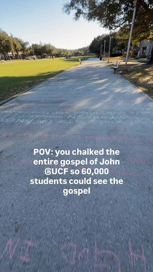 Students chalked the entire gospel of John at University of Central Florida to make Jesus known. dm us if you want to chalk your campus